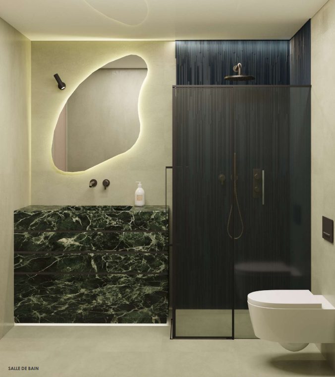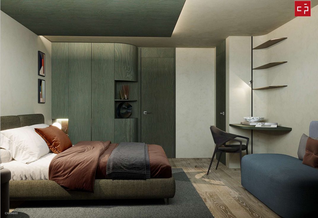 • Deux chambres en suite avec salle de douche, toilettes et rangements intégrés,