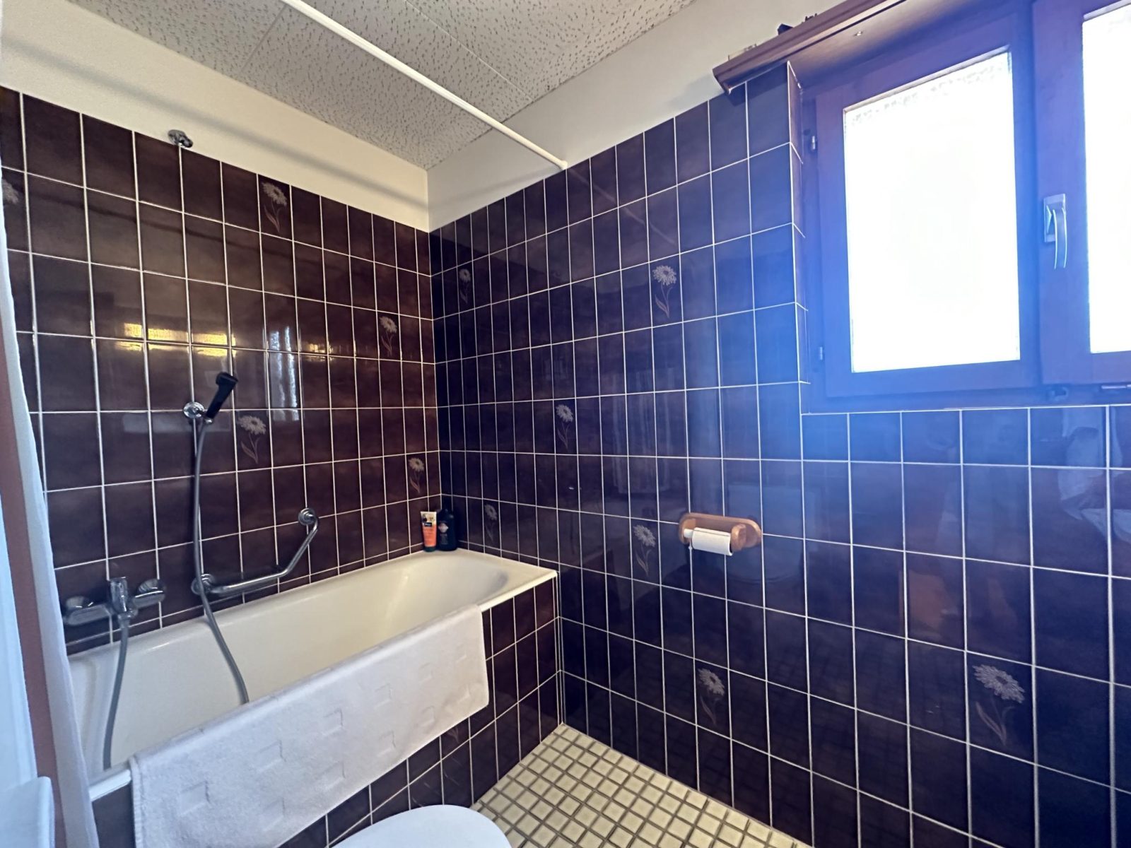 • A bathroom fitted with a bathtub and toilet