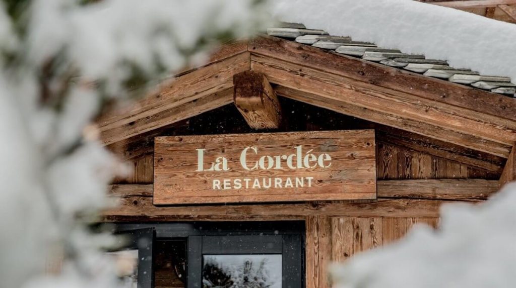 La Cordée est le restaurant qui fait partie d’un hôtel de Verbier et ses intérieurs rendent hommage à l’environnement montagnard avec ses poutres en bois, son sol en dalles et ses fenêtres à volets longues. Pourtant, il y a aussi des éléments contemporains comme un plan de cuisine ouverte et des cabines confortables.